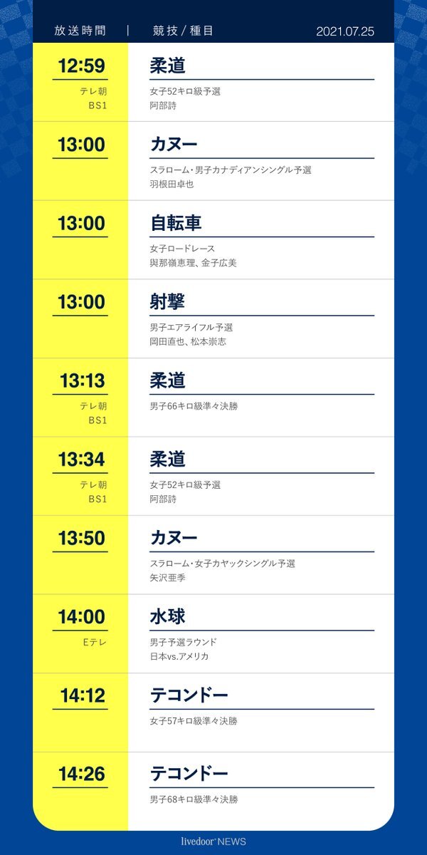 ▶︎個人戦!?チーム戦!? オリンピックは国ごとにチームをつくり、1か国最大5人までのチームで参加します。その選手それぞれに、"風受けになる""レース状況を変える"などの役割があり、自ら犠牲になり最終的にチームのエースを勝たせるために走ります。 ▶︎とにかく速い!! 長距離を走るために常にトップスピードで走るわけではないが、下りセクションでは80km/h、平地でも50km/h近いスピードで走り抜けることもあります。もはや自動車顔負けのスピードになっています。 ▶︎消費カロリーがすごい!! レースによっては、1日で約7000kcal(成人男性の3.5日分)消費すると言われているほど過酷です。選手はレース中にエネルギーを補給しながら、ひたすら走り続けます! ▶︎自宅が観戦会場!? ロードレースは、専用の会場が用意されているわけではなく、公道を走るため一般の民家の前を通ることも多いです。今回の東京2020大会では、御殿場市内の民家を通過します!自宅を装飾したり、バーベキューをしたり、沿道に出て応援したり、選手の邪魔にならない程度に楽しく盛り上がりましょう! Jul 23, 2021 · 東京オリンピック ロードレース放送予定・インターネット配信予定. See full list on 2020games.spotogotemba.com Jul 20, 2021 · 放送日: See full list on 2020games.spotogotemba.com